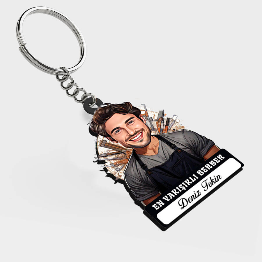 Karikatürlü - Erkek Berber İsimli Anahtarlık