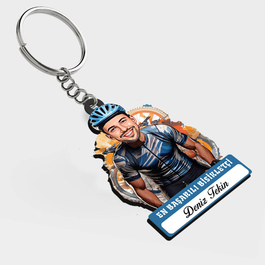 Karikatürlü - Erkek Bisikletçi İsimli Anahtarlık