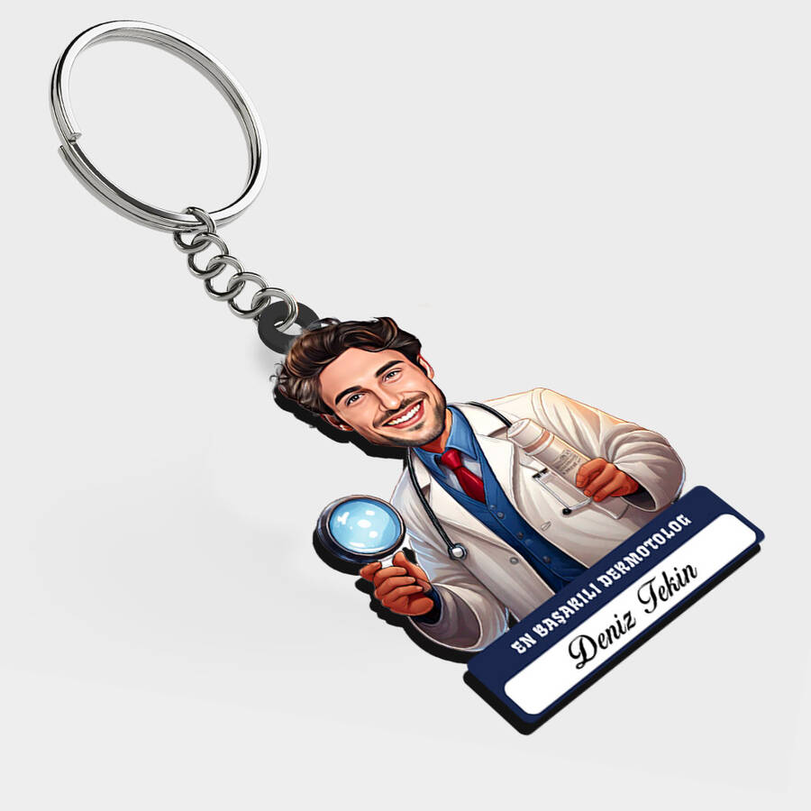 Karikatürlü - Erkek Dermotolog İsimli Anahtarlık