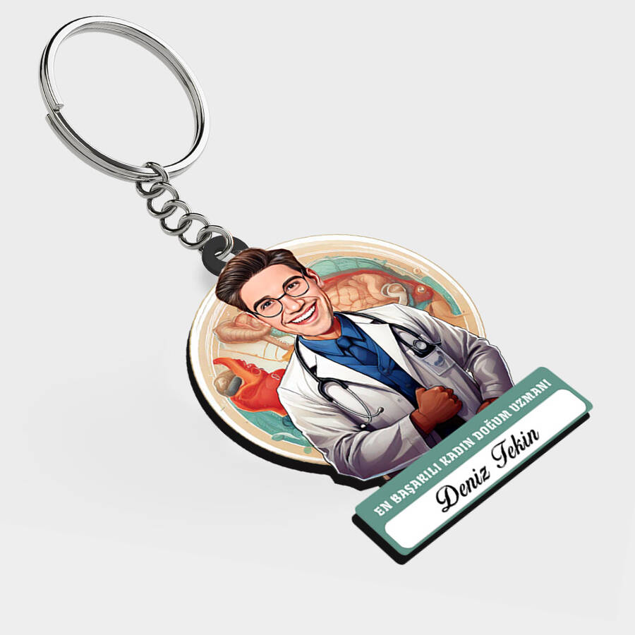Karikatürlü - Erkek Doğum Uzmanı İsimli Anahtarlık