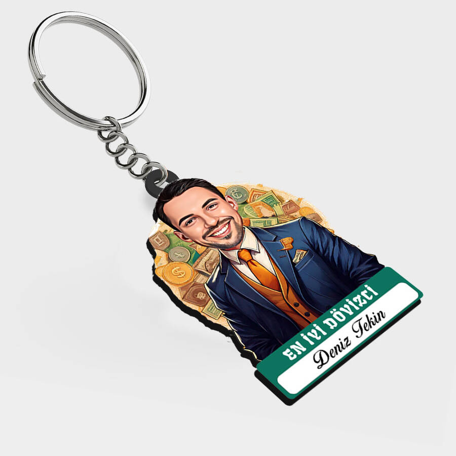 Karikatürlü - Erkek Dövizci İsimli Anahtarlık