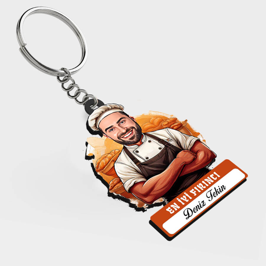Karikatürlü - Erkek Fırıncı İsimli Anahtarlık