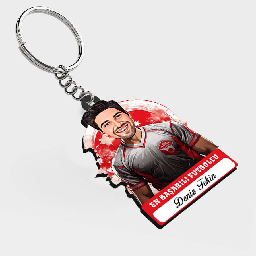 Karikatürlü - Erkek Futbolcu İsimli Anahtarlık