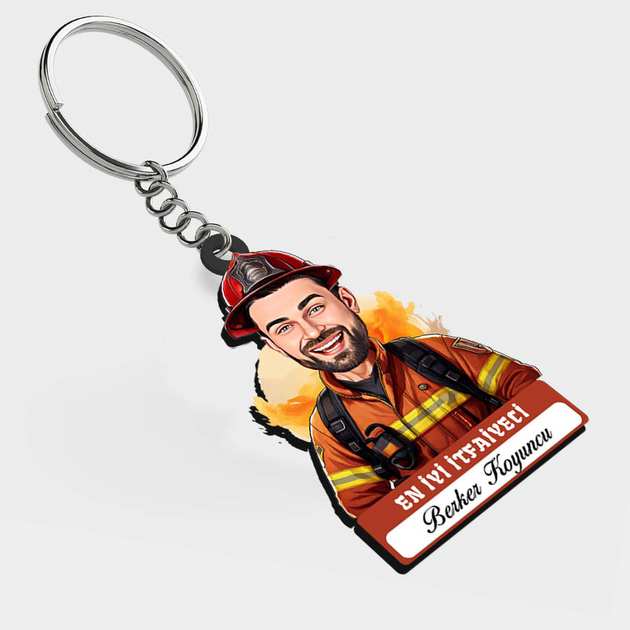 Karikatürlü - Erkek İtfaiyeci İsimli Anahtarlık