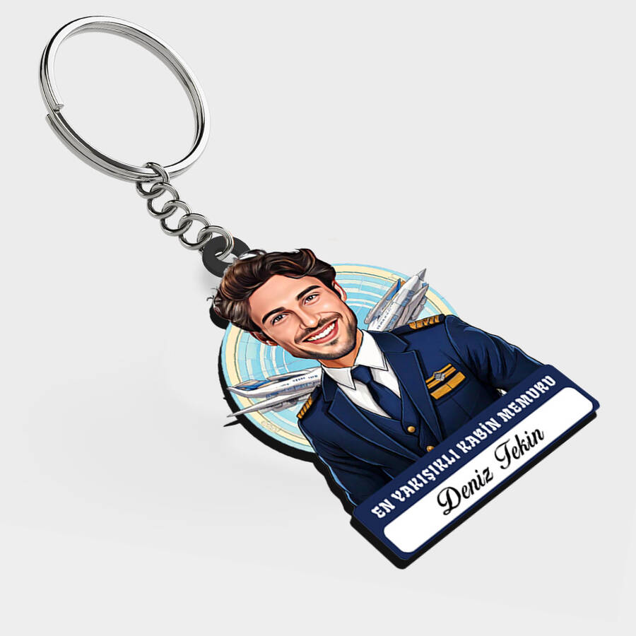 Karikatürlü - Erkek Kabin Memuru İsimli Anahtarlık