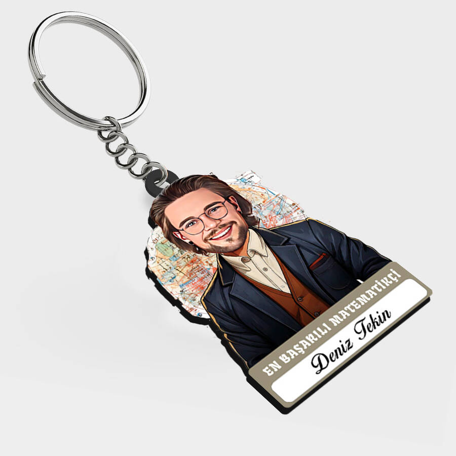 Karikatürlü - Erkek Matematikçi İsimli Anahtarlık