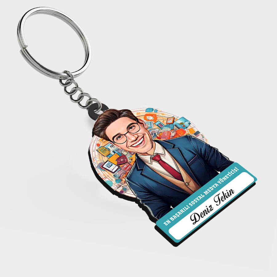 Karikatürlü - Erkek Medya Yöneticisi İsimli Anahtarlık