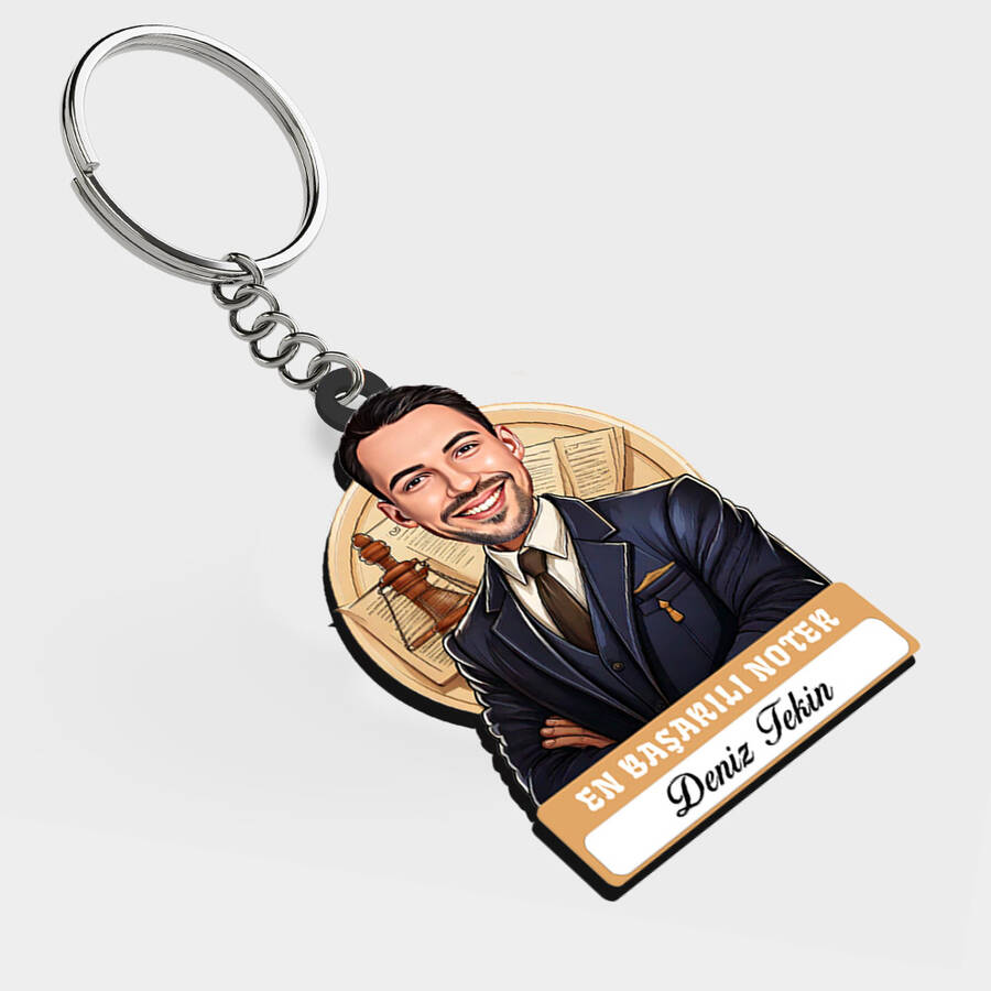 Resmi belgelerin ve mühürlerin dünyasında ciddiyetiyle tanınan noter beyler için, hayatın neşesini tasdik eden özel bir hediye hazırladık. Kendi karikatürünü üzerinde taşıyan bu anahtarlık, noterlik makamının ağırlığına eğlenceli ve samimi bir mola katacak.