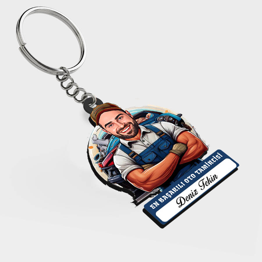 Karikatürlü - Erkek Oto Tamircisi İsimli Anahtarlık