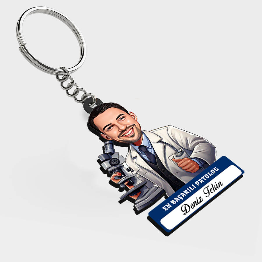 Karikatürlü - Erkek Patolog İsimli Anahtarlık