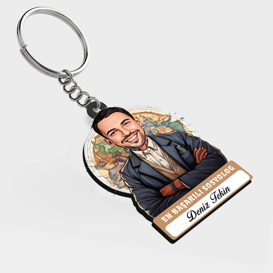 Karikatürlü - Erkek Sosyolog İsimli Anahtarlık