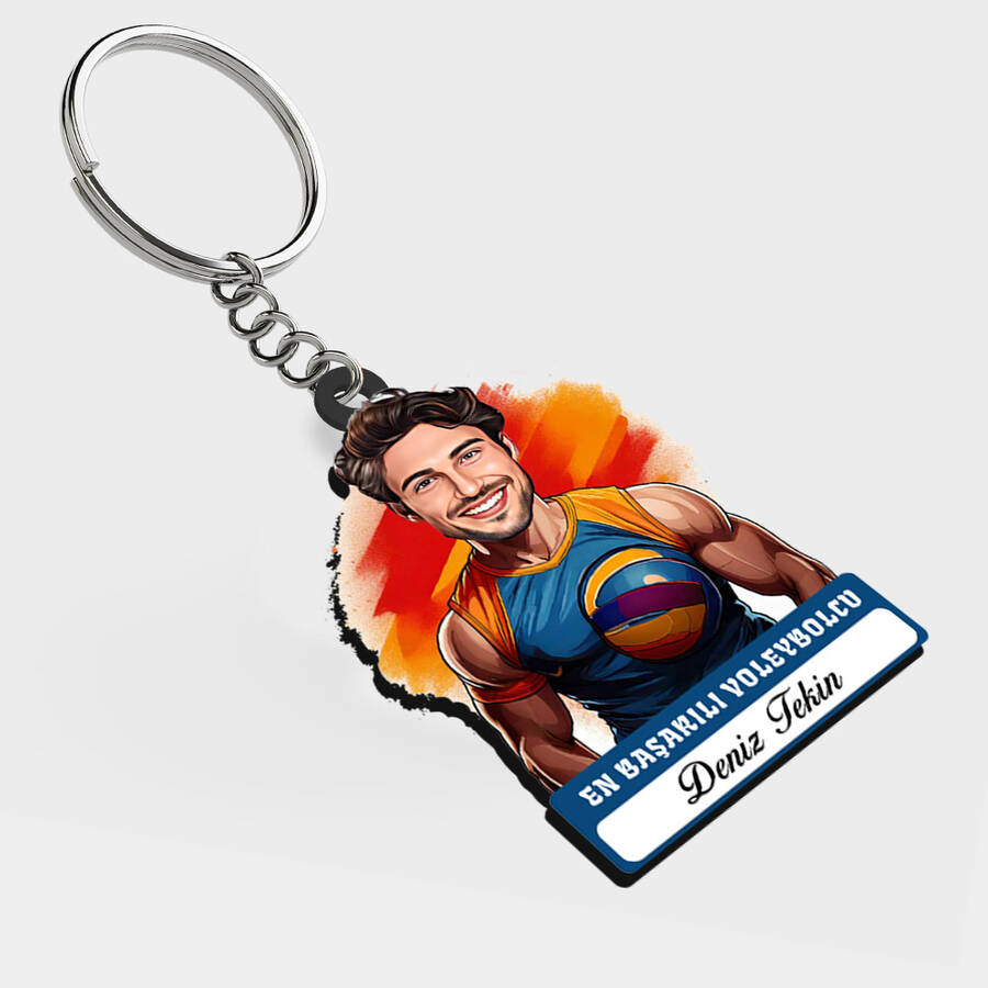 Karikatürlü - Erkek Voleybolcu İsimli Anahtarlık