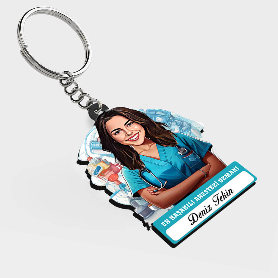 Karikatürlü - Kadın Anestezi Uzmanı İsimli Anahtarlık
