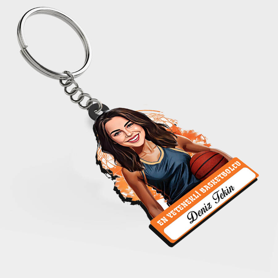 Sahanın kraliçesi olan ve smaçlarıyla ortalığı kasıp kavuran kadın sporcular için, en az üçlükleri kadar isabetli bir hediye tasarladık! Basketbol aşkını karikatürün şıklığıyla birleştiren bu anahtarlık, her antrenman çantasının yıldızı olacak.