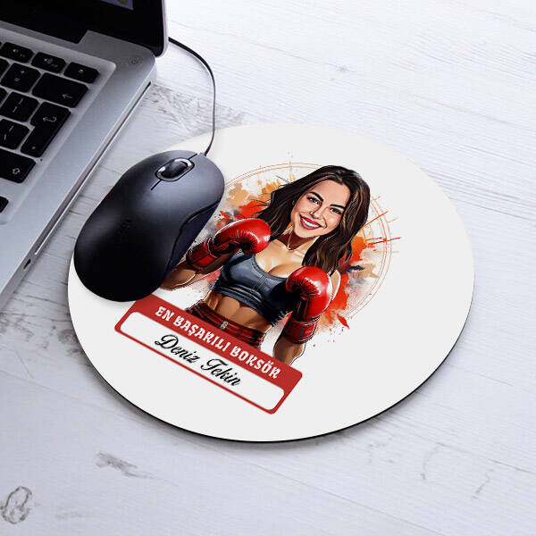 Çalışma alanınızı hem işlevsel hem de eğlenceli hale getirin! Kişiye özel karikatürlü mesleki mousepad, ofisinizdeki her tıklamayı kişisel ve neşeli bir deneyime dönüştürür. Ofis rutininizi kırın ve tarzınızı sergileyin. Karikatürlü Kadın Boksör Mousepad, sadece güçlü bir tasarıma sahip olmakla kalmaz, aynı zamanda sevdiğinizin dinamik ve cesur ruhunu her gün yansıtacak.
