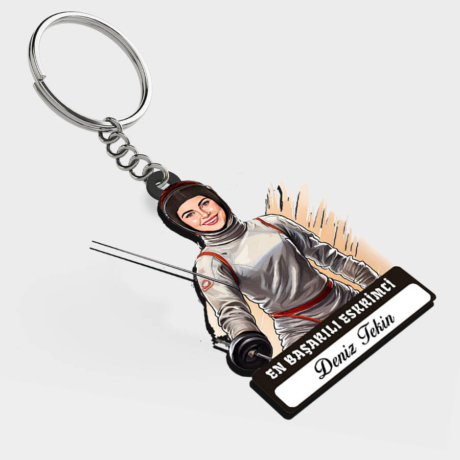 Karikatürlü - Kadın Eskrimci İsimli Anahtarlık