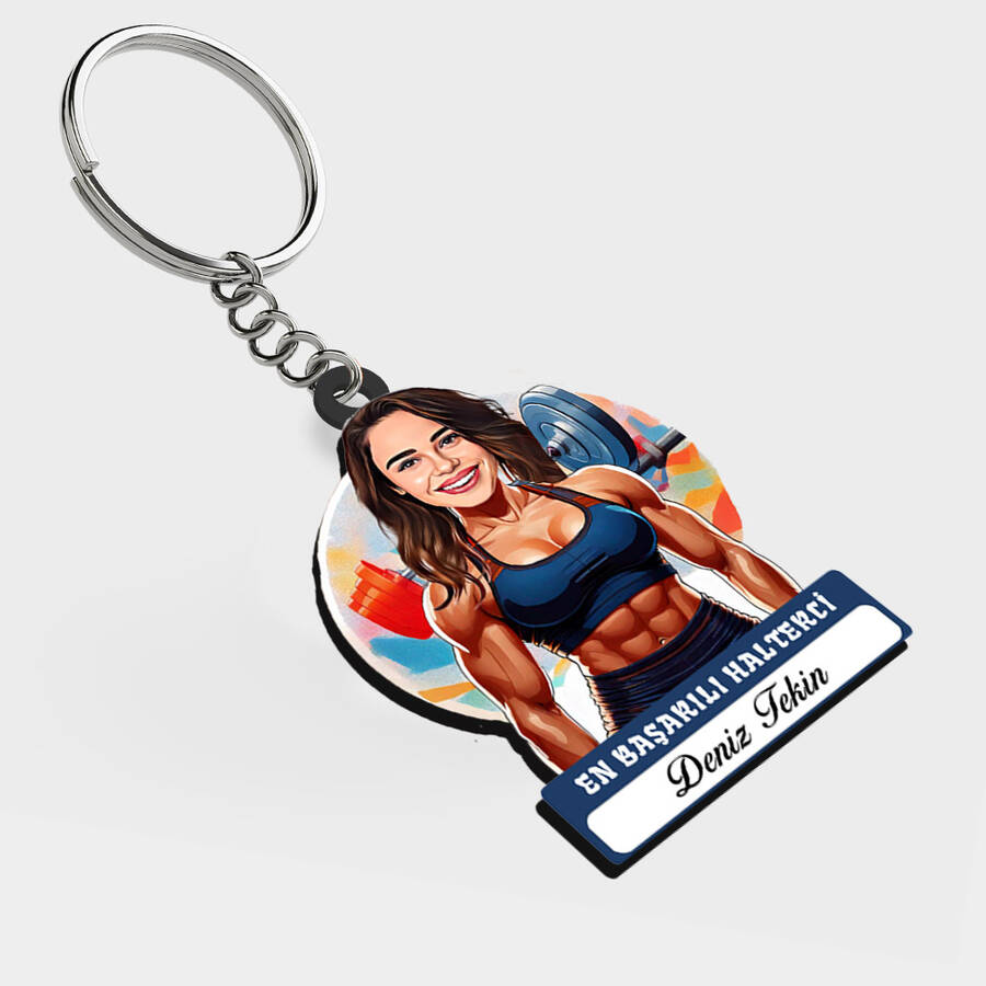 Hem güçlü hem de karizmatik kadın halterciler için, podyumdaki o muazzam azmini karikatürün neşesiyle ödüllendirdik! Kendi halter kıyafetiyle tasarlanan bu anahtarlık, sporcu ruhunu her yere taşımasını sağlayacak harika bir aksesuar.