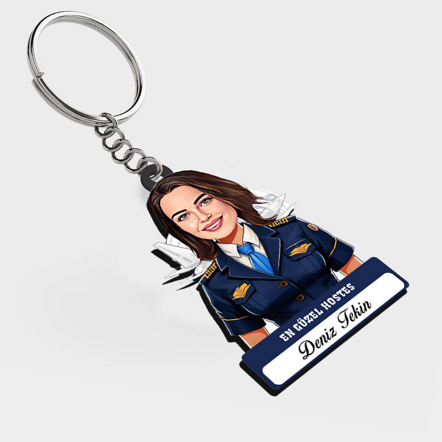 Gökyüzünün en şık ve en yardımsever hostesi için hazırlanan bu karikatürlü sürprizle uçuşa geçmeye hazır olun! Kendi ismine ve karikatürüne özel hazırlanan bu anahtarlık, jet-lag yorgunluğunu bir gülümsemeyle unutturacak kadar iddialı.