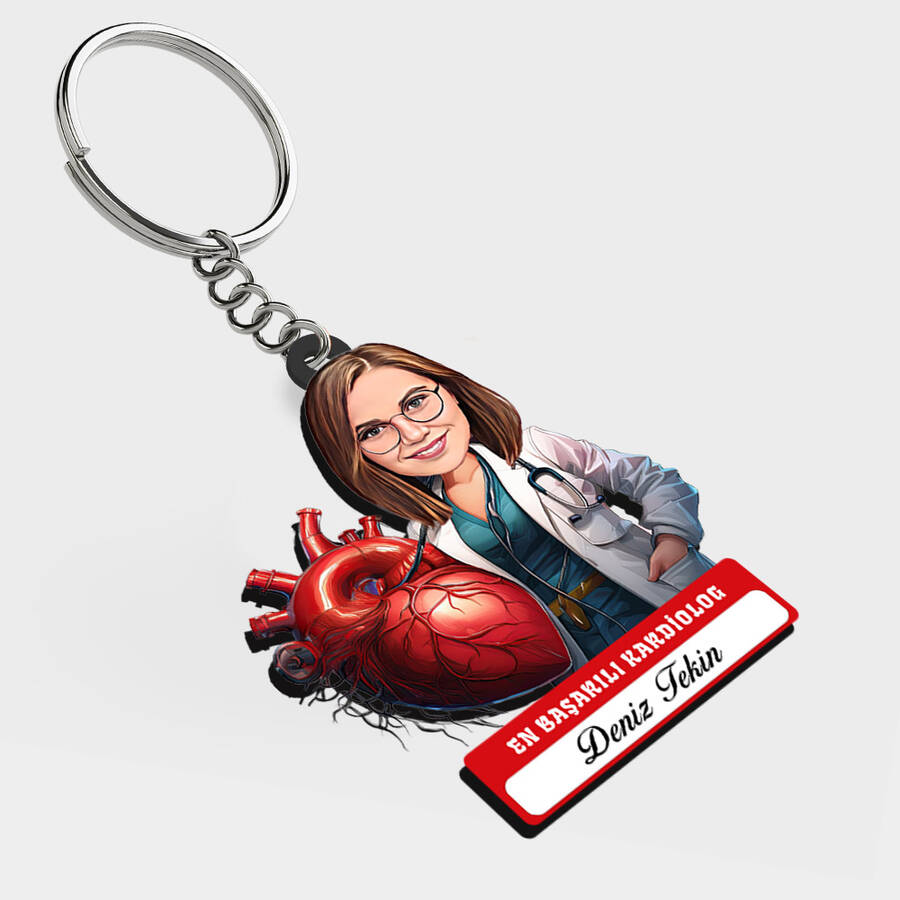 Kalplerin ritmini düzenleyen ve hayat veren o başarılı kardioloğa, kendi kalp atışlarını hızlandıracak bir sürpriz yapın. EKG dalgalarıyla değil, kendi karikatürünün sevimliliğiyle neşeleneceği bu anahtarlık, mesleki kariyerindeki en anlamlı aksesuar olacak.