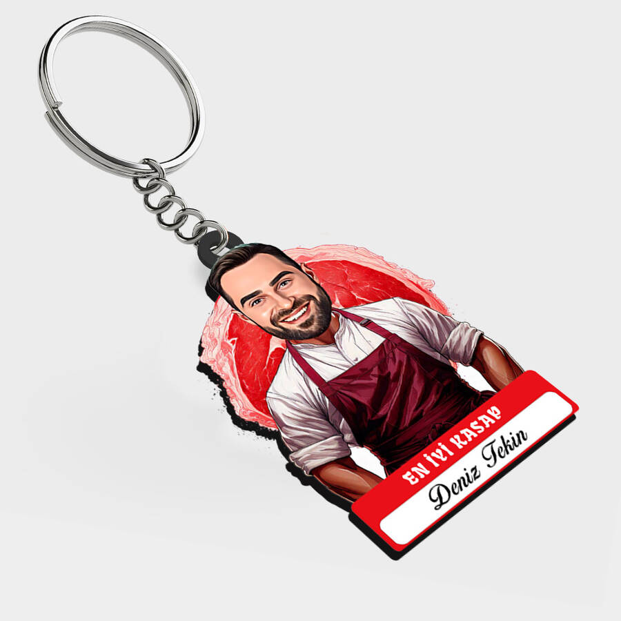 Mutfakta ustalığını konuşturan ve işinin ehli olan kadın kasaplara, esprili ve çok havalı bir hediye hazırladık. Kendi karikatürüyle süslü bu anahtarlık, her dükkan açılışında ona güç verecek ve mesleğinin neşeli tarafını simgeleyecek.