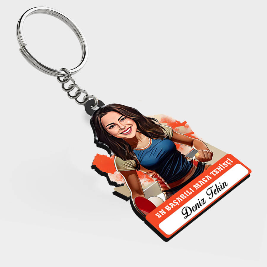 Karikatürlü - Kadın Masa Tenisçisi İsimli Anahtarlık