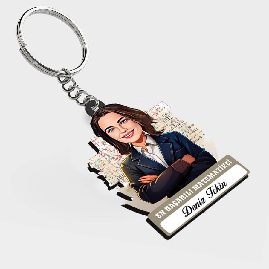 Karikatürlü - Kadın Matematikçi İsimli Anahtarlık