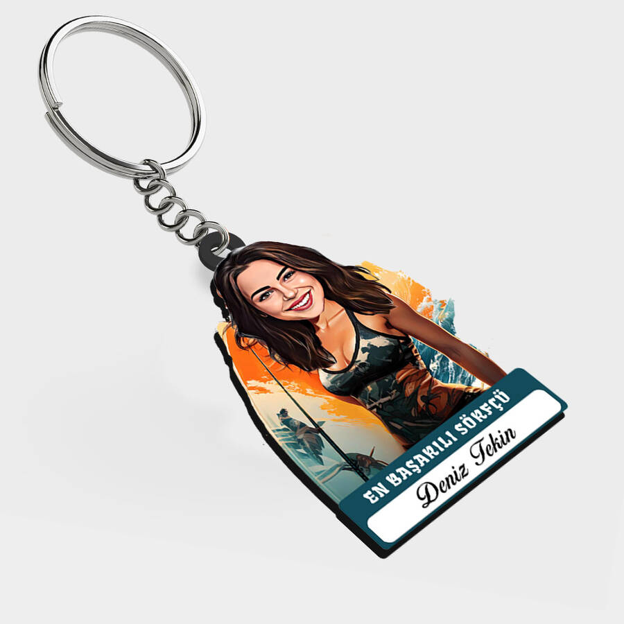 Karikatürlü - Kadın Sörfçü İsimli Anahtarlık