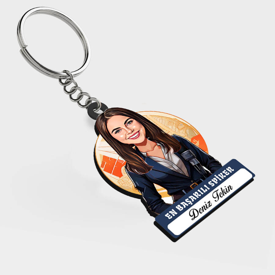 Diksiyonuyla ve zarafetiyle izleyiciyi büyüleyen kadın spikerler için, son dakikada gelen en sıcak haber bu anahtarlık! Kendi karikatürünü taşıyan bu şık hediye, stüdyo ışıklarından daha çok parlayarak onun için özel bir hatıra olacak.