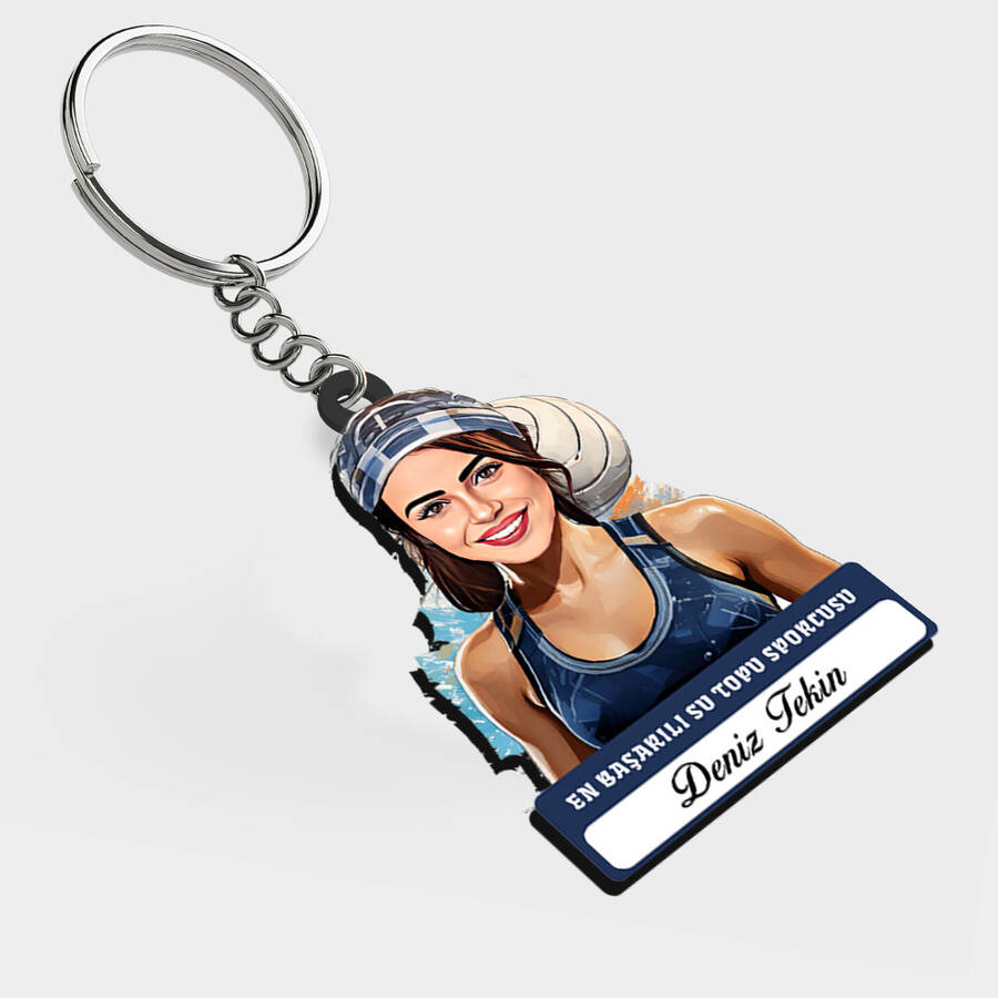 Karikatürlü - Kadın Su Topu Oyuncusu İsimli Anahtarlık