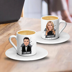 Karikatürlü Yakışan Çiftler İkili Kahve Fincanı