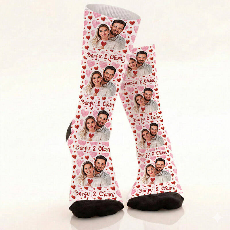 Aşkın tüm sembolleri bu çorapta buluştu: fotoğraflarınız, isimleriniz ve romantik kalpler! 4 harika anınızın kalplerle çevrelendiği bu özel model, duygusallığı zirveye taşıyor. Hem görsel olarak çok zengin hem de anlam olarak çok derin olan bu çoraplar, sevgilinizin kalbini bir kez daha çalmanız için tasarlandı. Detaylara önem veren ve romantizmi seven bir sevgiliniz varsa, bu kutulu hediye tam aradığınız şey!