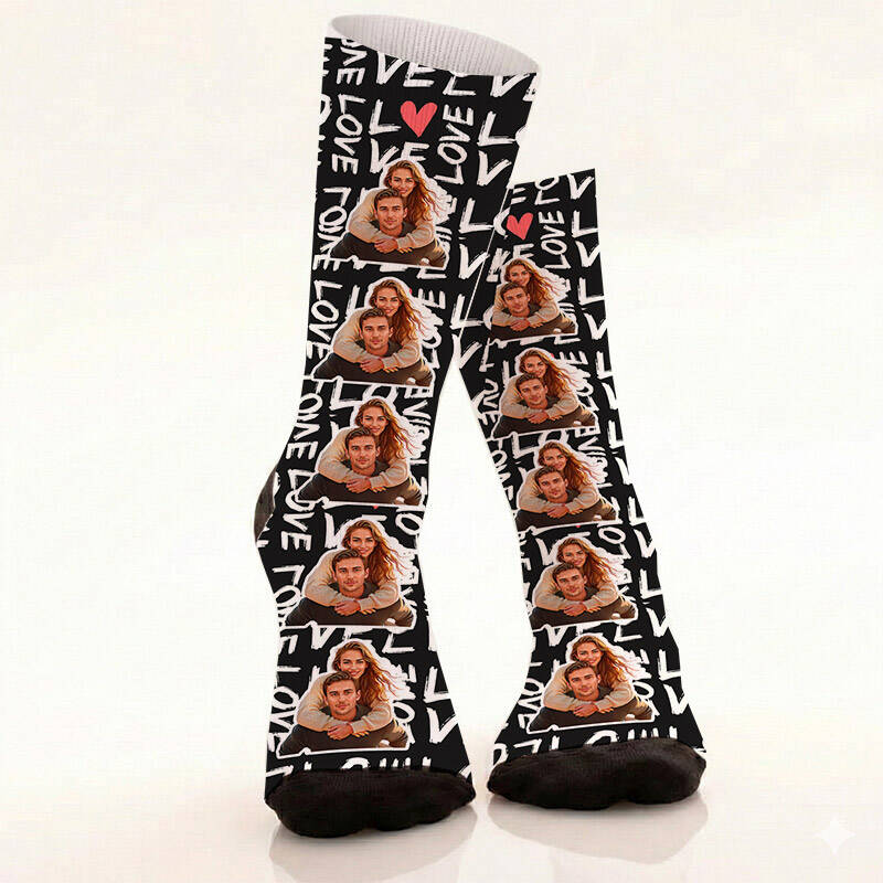 Aşkın görsel şölenine davetlisiniz! 5 farklı fotoğraf karesinin "love" yazısıyla dans ettiği bu çorap, aşk hikayenizi ayaklarınıza taşıyor. Modern tasarımı ve kişiye özel dokunuşuyla bu ürün, sıradan bir 14 Şubat hediyesinin çok ötesinde bir anlama sahip. Sevgilinizin gardırobunun en "ikonik" parçası olmaya aday bu modelle, ona duyduğunuz sevgiyi her adımda hatırlatın.