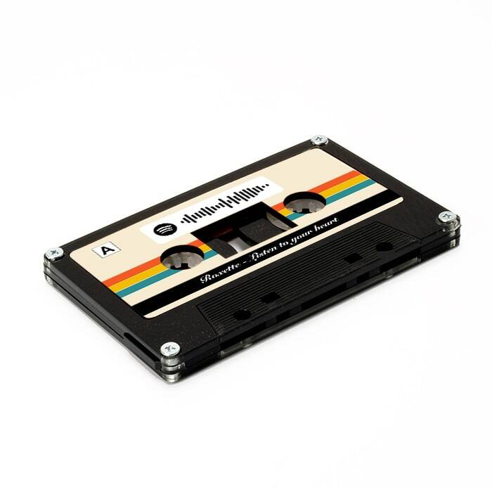 90lı yıllarda ne çok insan teyp kasetleri dinlerdi öyle. Herkesin sevdiği sanatçıların albümlerinden en az 50-60 tane teyp kasetleri olurdu. Yotube'nin popülerleşmesi, zamanla CD, DVD çalarlar ile MP3 - MP4 gibi dijital teknolojilerin gelişmesi ve flash belleklere şarkı kaydedilmesi ile teyp kasetleri rafa kalktı. Kişiye Özel Spotify Ses İzi Nostaljik Kaset ile bu nostaljik objeyi modern bir yorumla tasarlayarak yeniden sizlerle buluşturuyoruz. Üstelik tamamen de size özel bir şekilde. Orijinal Teyp kaseti görünümünde tasarladığımız bu özel objenin A yüzüne Spotify uygulamasına kayıtlı şarkının QR CODE ses izini, B yüzüne ise isimleriniz ile birlikte mesajınızı aktaracağımız Kişiye Özel Spotify Ses İzi Nostaljik Kaset ile sevdiğinize harika bir nostaljik sürpriz yapabileceksiniz.