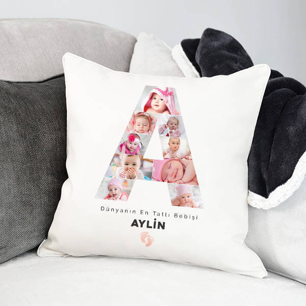 Kız Bebeklere Özel Fotoğraflı Harf Yastık