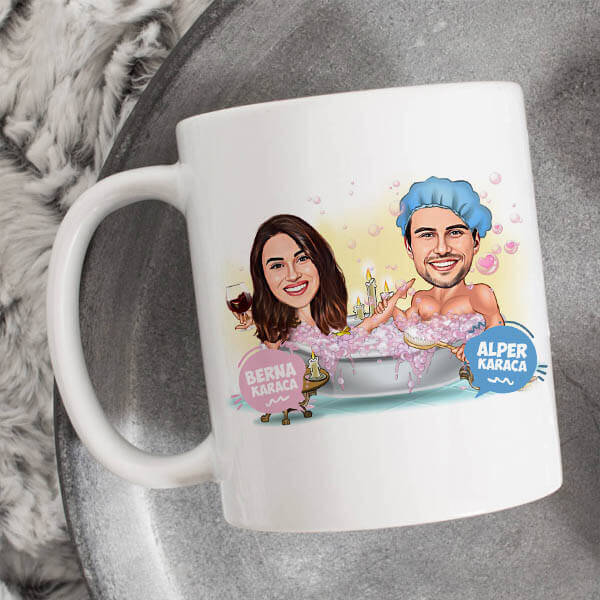 Küvetteki Çiftler Karikatürlü Kupa Bardak
