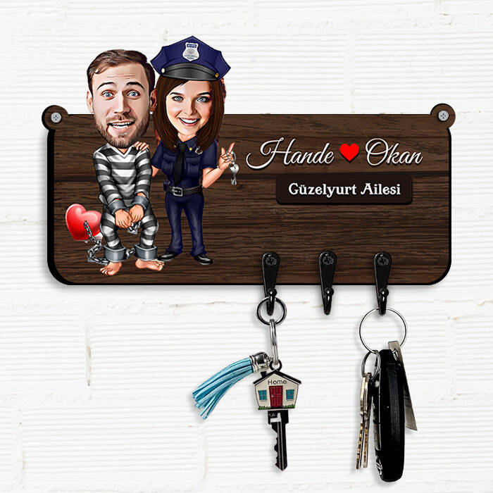 Mahkum ve Aşığı Karikatürlü Anahtar Askısı