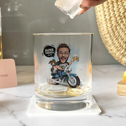 Motosikletli Erkek Karikatürlü Viski Bardağı