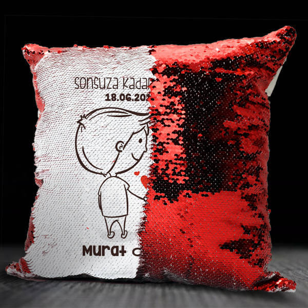 1 -) Yastık 40 x 40 cm. ölçülerinde olup, kare şeklindedir. Üzerinde KIRMIZI renkte ışıltılı payetler bulunmaktadır.2 -) Pulları aynı istikamete doğru çevirdiğinizde payetlerin arkasına basılı olan fotoğrafınızı görebilirsiniz.3 -) Ters tarafa doğru payetleri ittiğinizde ise KIRMIZI ışıltılı pullarla karşılaşacaksınız.4 -) Sihirli yastık mekanlarınız için oldukça dekoratif özellikte bir yastık modelidir. Koltuk köşesi süslemesi için idealdir.5 -) Siparişiniz halinde, içi kaliteli boncuk elyaf dolgulu şekilde gönderilecektir.6 -) Mutlu Çiftler İsme Özel Sihirli Yastık normal koşullarda hafta içi saat 14.00'a kadar sipariş vermeniz halinde aynı gün kargoya teslim ediyoruz.7 -) Yastık ütülenmemelidir ve 40 derecede ılık suda elde yıkanması tavsiye edilmektedir.Ürün Etiketleri