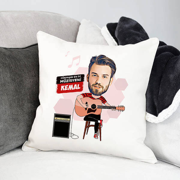 Müzisyen Erkeğe Hediye Karikatürlü Yastık