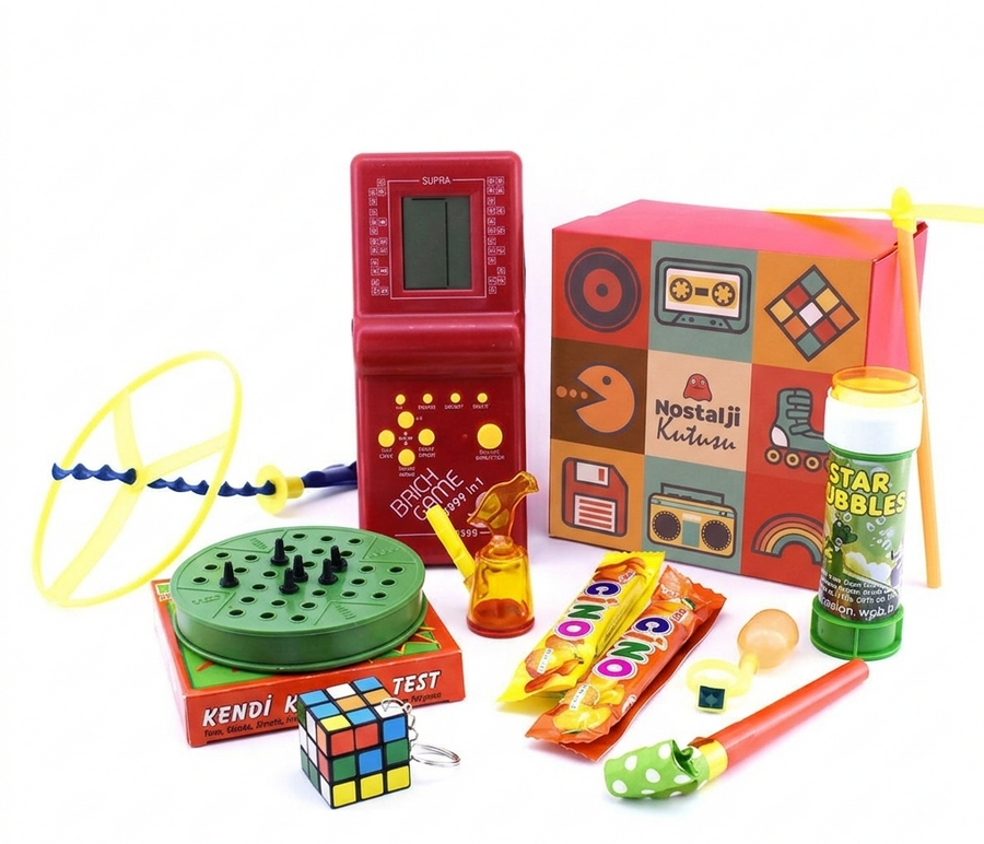 Bu harika nostaljik hediye ile 90 lar ruhuna yakışır bir sepet çıktı ortaya. Özellikle o dönem çocuk olan ve şimdi gençliğini yaşayanlar için adeta bir geri dönüş gibi olacak. Bu hediyeniz ile duygulanacağı kesin. Aynı zamanda sizin böyle sürprizli bir hediye ile ona bir anı bırakmanız da çok hoş bir incelik olacak. Nostaljik hediye kutusunu ilk açtığı an hem çok şaşıracak hem de çok mutlu olacak. Nostaljik oyuncak sepeti hem ruhuna hem boğazına hem de zihnine hitap edecek diyebiliriz. O yıllarda elimizden düşürmediğimiz Tetris bizce bu hediye ile yine en üst sıraya yerleşecek. Sürekli bakkaldan almaya gittiğimiz cino şekerlemeleri de ağızları tatlandıracak. Kutuda yer alan ve hepsi 90’lı yılar olan ürünler ile farkındalık yaratıyor olacaksınız. Unutulmaz hediye vermek isteyenler için hem çok şık hem kullanışlı hem de birçok duyguyu bir arada barındıran harika bir hediye kutusu diyebiliriz. Üstelik erkeğe alınacak hoş bir hediye alternatifi de olabilir.Nostaljik Oyuncaklar Hediye Sepeti İçerisinde;