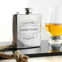 Otantik İsme Özel Çelik İçki Matarası 6 Oz Gümüş