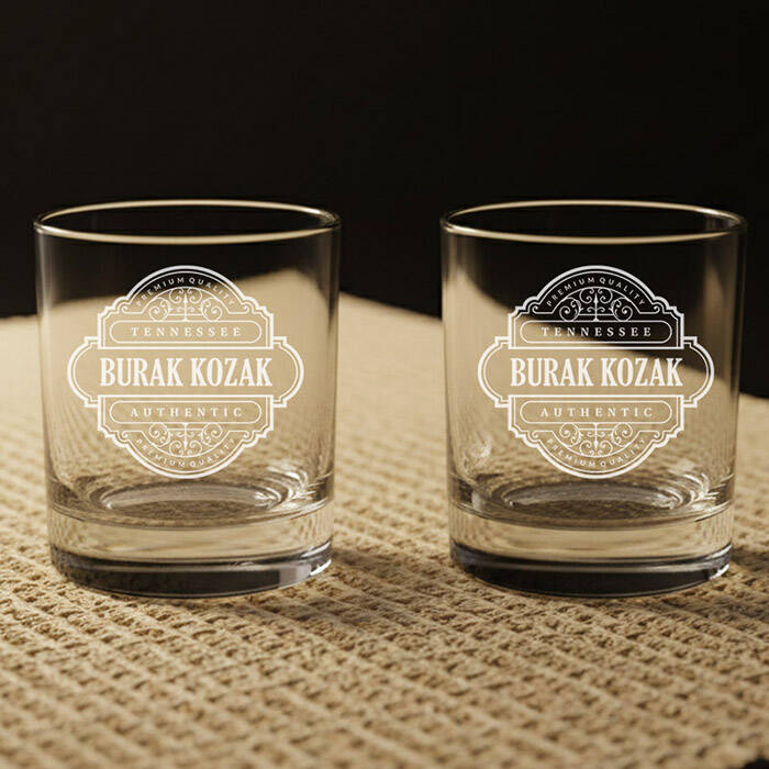 Otantik Tasarımlı İsimli İkili Viski Bardağı
