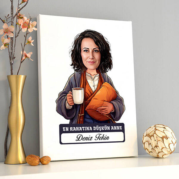 Sıradan hediyelere veda edin, kişiye özel kahkahalara merhaba deyin! Annenizin yüzünü tebessümle süsleyecek bu karikatür tablo tam bir başyapıt. Ev terliğini ayağından, kahvesini elinden bırakmayan annenize sıcacık bir hediye arıyorsanız, bu karikatürlü tablo tam aradığınız keyifli armağan olabilir.