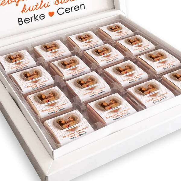 ** Ürün, beyaz renk şık ve kaliteli hediye kutusu içerisinde gönderimi sağlanmaktadır.** Hediye Kutusu ölçüleri :22 x 22 x 3,50 cm.dir.** Tercihe bağlı olarak 16'li,32'li ve 48'li adetlerden sipariş verebilirsiniz. Çikolatalar kare şeklinde sütlü çikolatadır.** Çikolatalarımız MABEL olup taptazedir. Çikolata ölçüleri 4 X 4 cm.dir.** Ürün kişiselleştirme çikolata ambalajı üzerine ve çikolata kutusunun iç yüzeyine yapılmaktadır.** Seni Seviyorum Fotoğraflı Çikolata Kutusu hafta içi saat 14.00'a kadar verilen siparişlerde Aynı Gün Kargoya teslim edilmektedir.