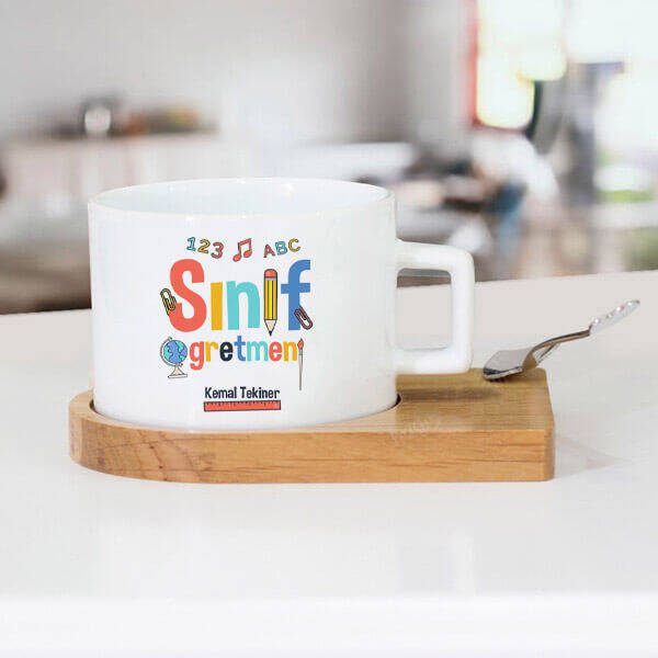 1 -) Fincan altlığı ahşap malzemeden (meşe ağacından) yapılmıştır. Üzerinde fincanı yerleştirmek için yuvarlak bir yuvası bulunmaktadır.2 -) Çay kaşığının ucu ve sapı kalp şeklinde bir tasarıma sahiptir. Mıknatıs özelliği sayesinde düşmez.3 -) Fincan 20 X 5,5 cm ölçülerine sahip olup, seramik malzemeden üretilmiştir.4 -) Siparişiniz halinde kaşık ve ahşap altlığıyla birlikte gönderilmektedir.5 -) Sınıf Öğretmenine Hediye Çay Fincanı, hafta içi saat 14.00'a kadar verilecek siparişlerde aynı gün kargoya teslim edilmektedir.Ürün Etiketleri