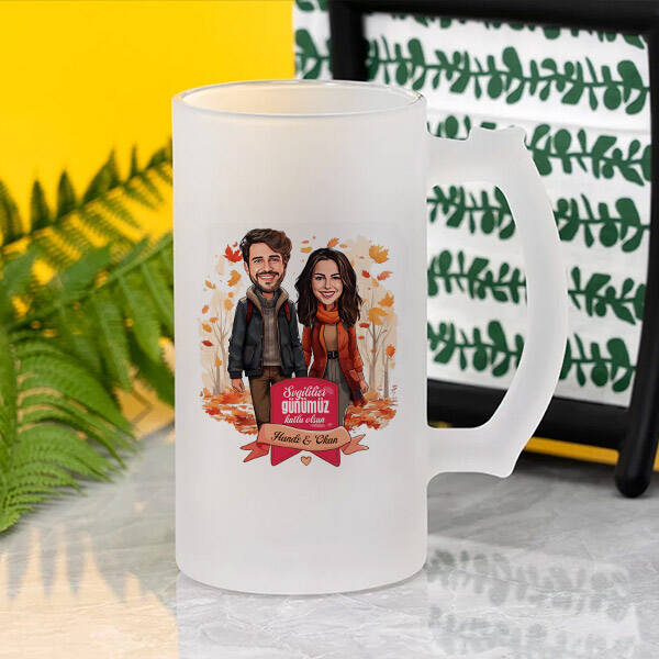 Sonbahar Yaprakları ve Aşkımız Karikatürlü Bira Bardağı