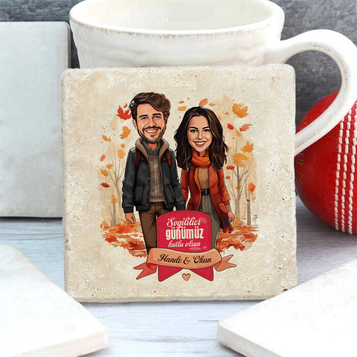 Sonbahar romantizmin mevsimidir; düşen yapraklar, hafif esen rüzgar ve el ele yürüyüşler... Bu bardak altlığı, aşkınızın sonbahar yaprakları gibi her geçen gün güzelleşmesini simgeliyor. Karikatürünüzle kişiselleştirilen bu özel tasarım, sevgilinize her yudumda huzur ve romantizm yaşatacak.