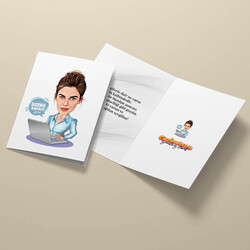 Sosyal Medya Kızı Karikatürlü Tebrik Kartı