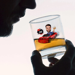 Spor Arabalı Erkek Karikatürlü Viski Bardağı