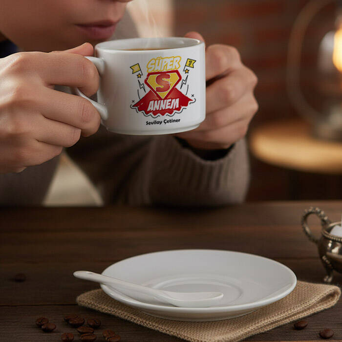 Anneniz, kahve molasında bile kendisinin bir süper kahraman olduğunu hissetsin. Üzerinde "Süper Anne" yazan ve ismiyle kişiselleştirilen bu fincan, anneniz için hem kullanışlı hem de duygusal bir hediye. Bu özel fincanla annelerinizi mutlu edin.